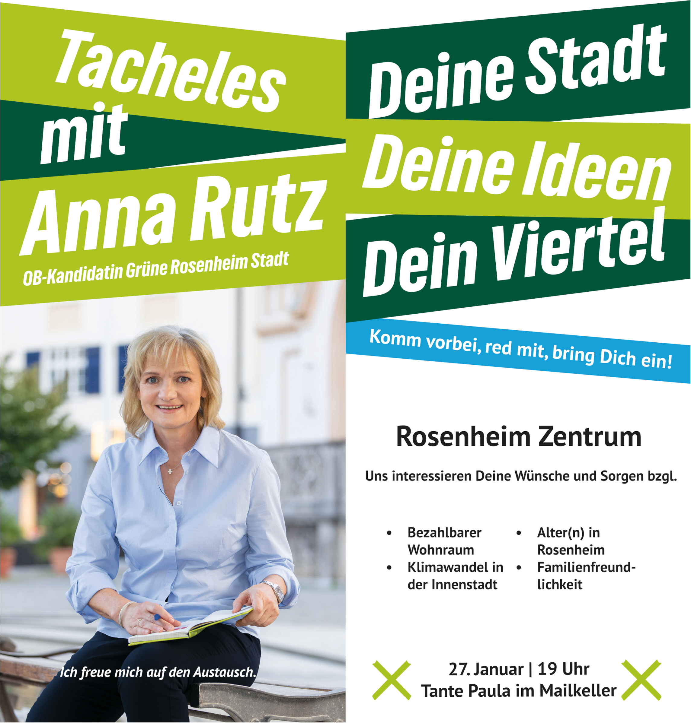 Mit dabei unsere OB Kandidatin Anna Rutz, Kandidierende für den Stadtrat und Ursula Sowa, MdL. Die Veranstaltung findet am 27. Januar um 19.00 Uhr im Mail Keller statt. Wir freuen uns auf einen offenen Austausch und viele unterschiedliche Perspektiven.